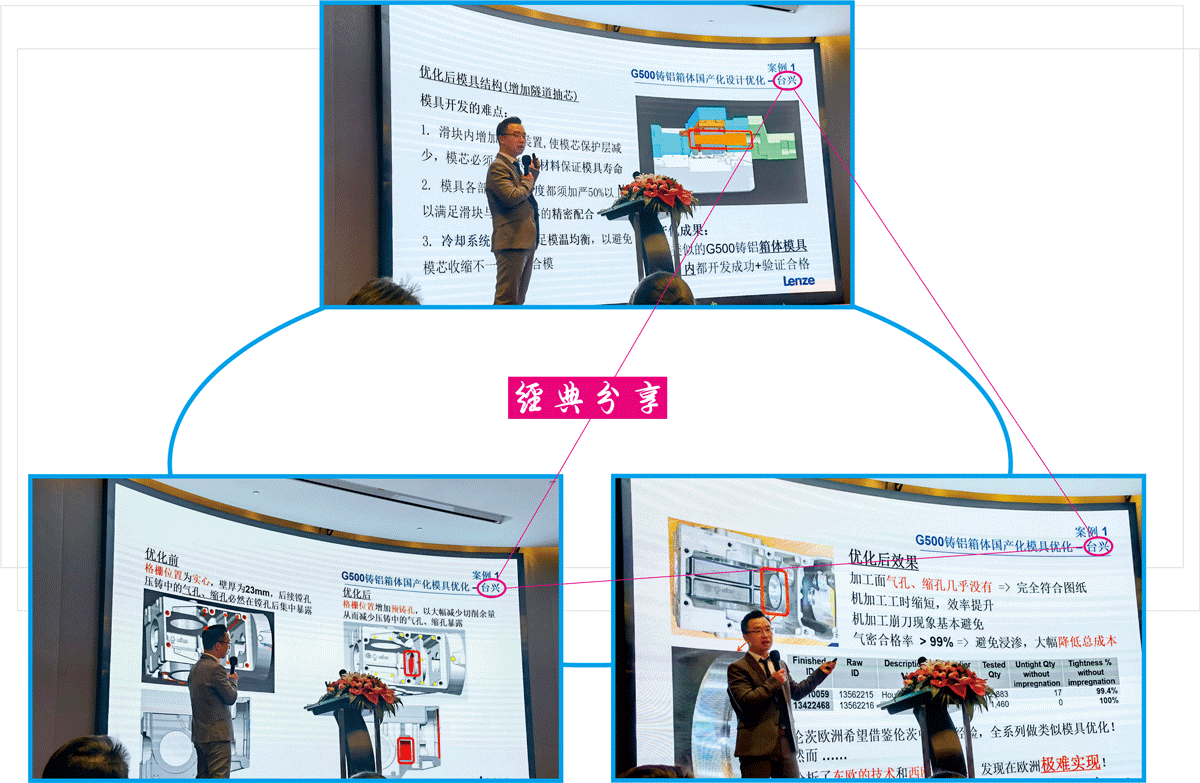 接著,主持人就2020年度中國區(qū)域采購業(yè)務(wù)提出觀點(diǎn):作為中國的戰(zhàn)略供應(yīng)商,一定要具備出色的技術(shù)和穩(wěn)定的質(zhì)量,具備高效的配合和靈活的產(chǎn)能。為此,主持人拿出與我司合作的“G500鑄鋁箱體國產(chǎn)化模具優(yōu)化項(xiàng)目作為經(jīng)典案例進(jìn)行了重點(diǎn)介紹,介紹完之后還邀請章總起立示意,與大家相識。