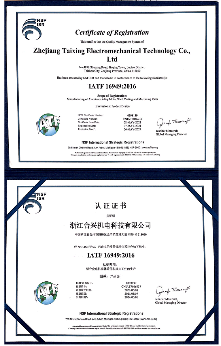 為進一步規(guī)范公司生產、科研、生產操作流程、有效控制風險、提高投資收益,形成標準化經營、規(guī)范化管理的模式,實現與國際化高端管理模式接軌,公司從戰(zhàn)略的眼光出發(fā),從2020年開展導入IATF16949質量管理體系。通過一年的苦煉內功、深耕細作,于2021年3月份順利通過了中國質量認證中心關于IATF16949質量管理體系的認證和審核,于2021年5月8日獲得了IATF16949質量管理體系認證證書。